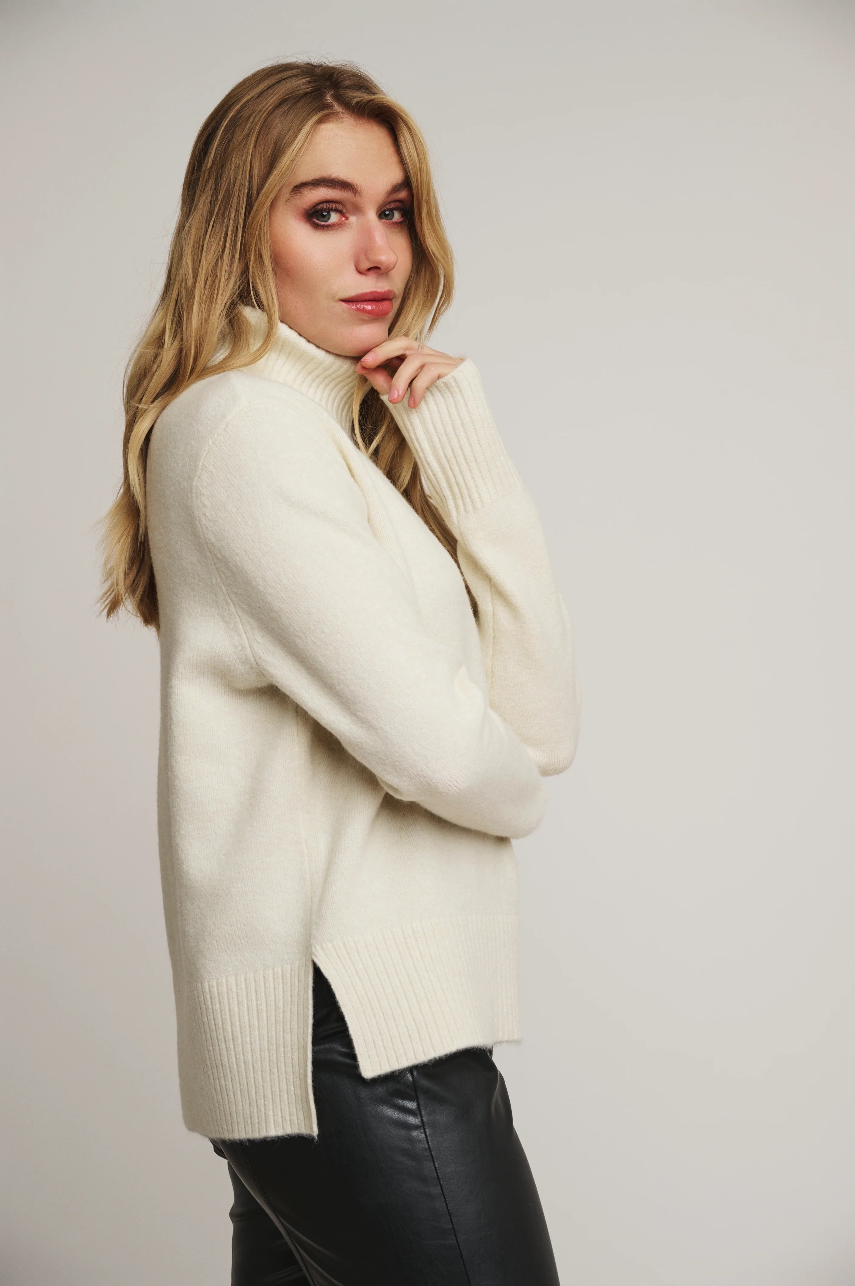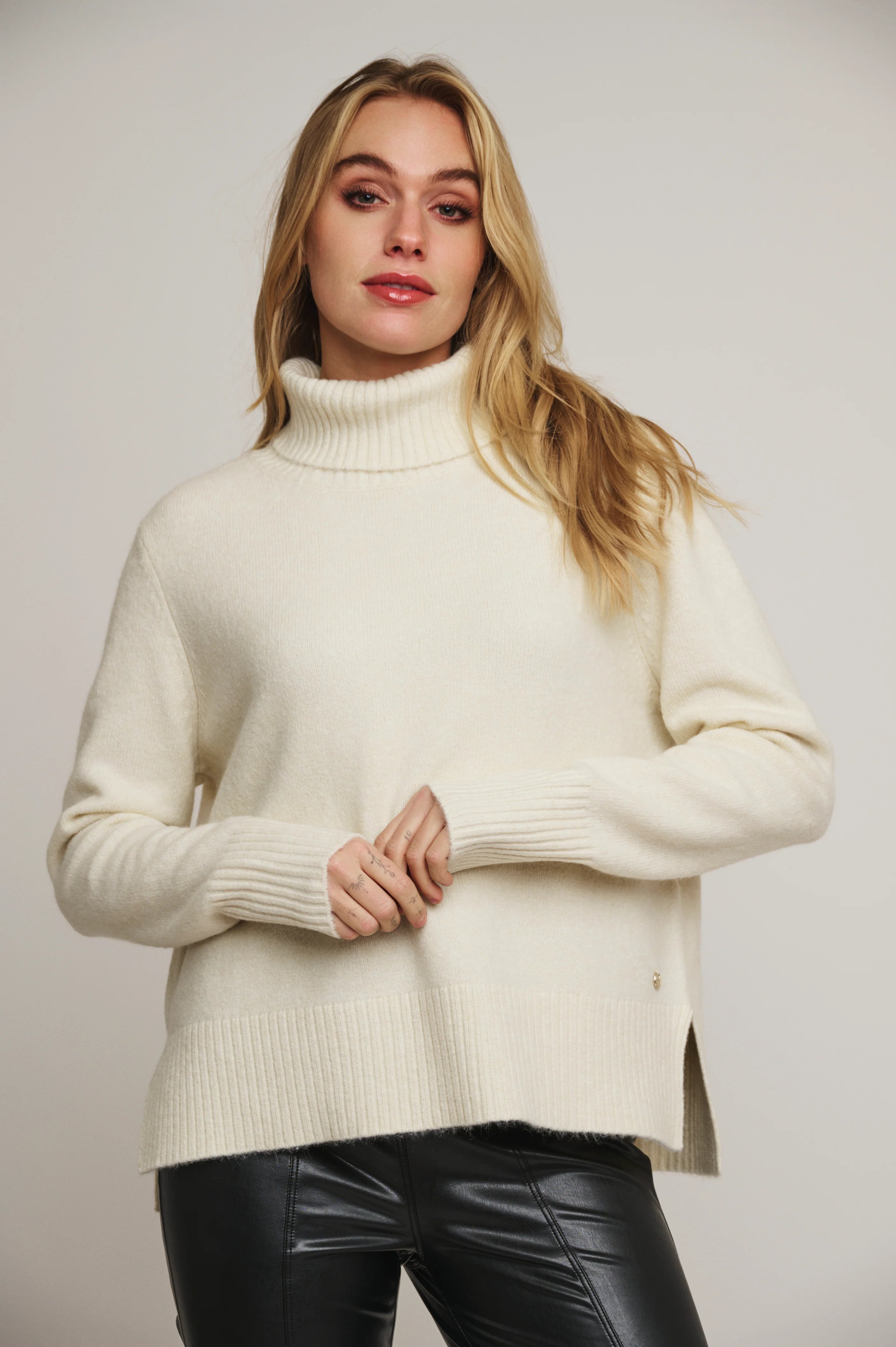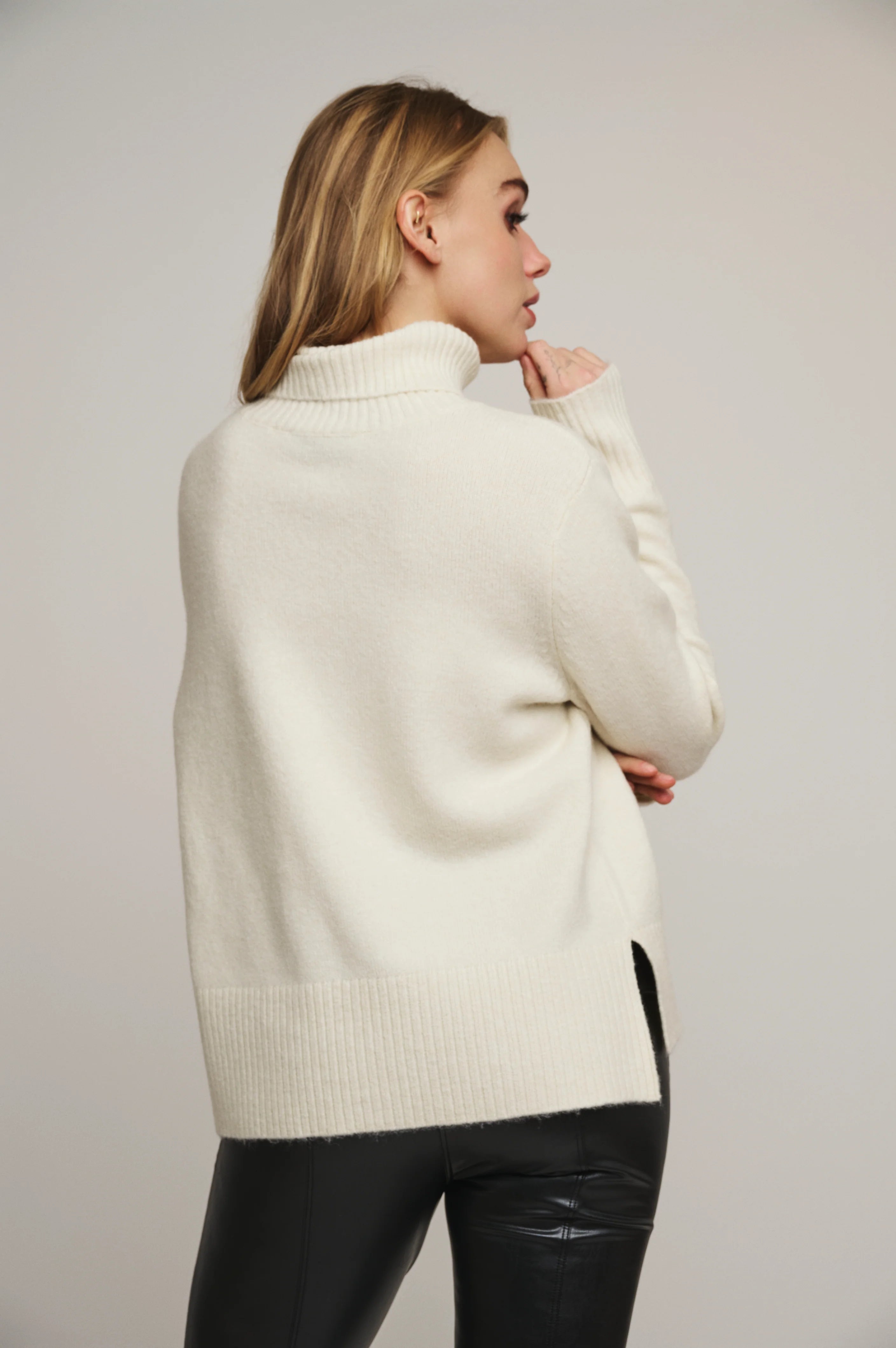 This classic oversized turtleneck sweater is a must have for this winter. In a versatile birch colour, this knit will match with any style of jeans or skirt, so will be a timeless addition to your wardrobe. The ribbed details at the sleeves and bottom adds some extra casual details.