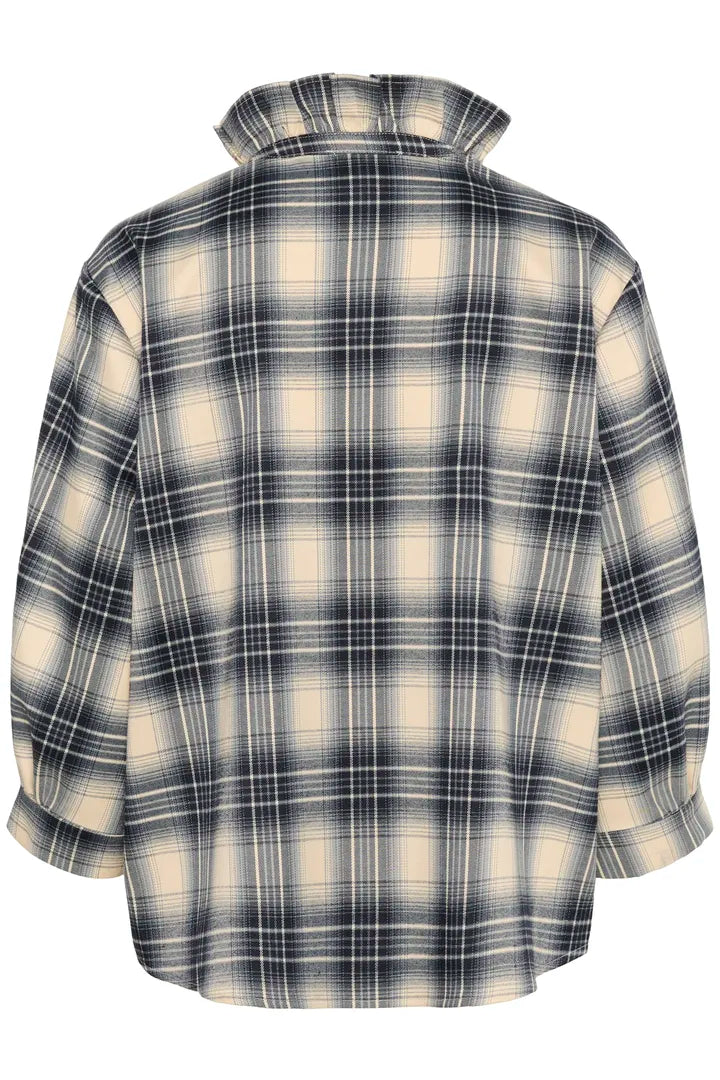 A casual every day outfit doesn't have to be boring! A pair of jeans is instantly elevated with this 3/4 length sleeve blouse, simply throw on with your trainers and wear all day. The checked flannel pattern and ruffled details across the blouse brings a fresh blend of feminine style and casual design.