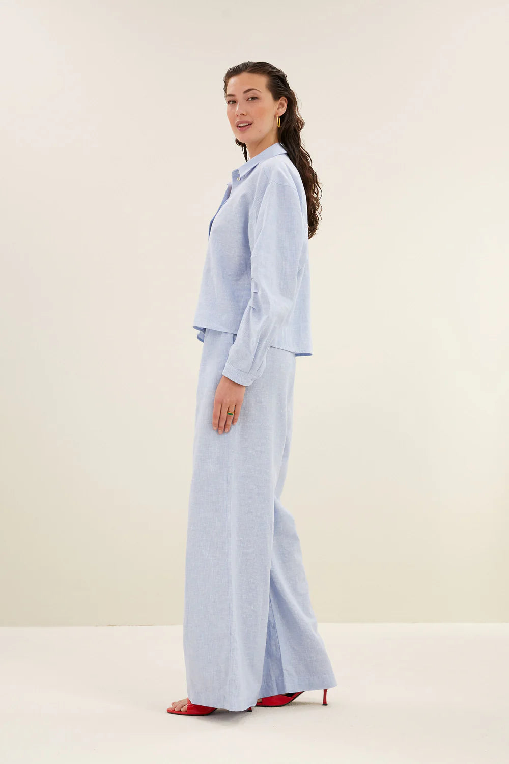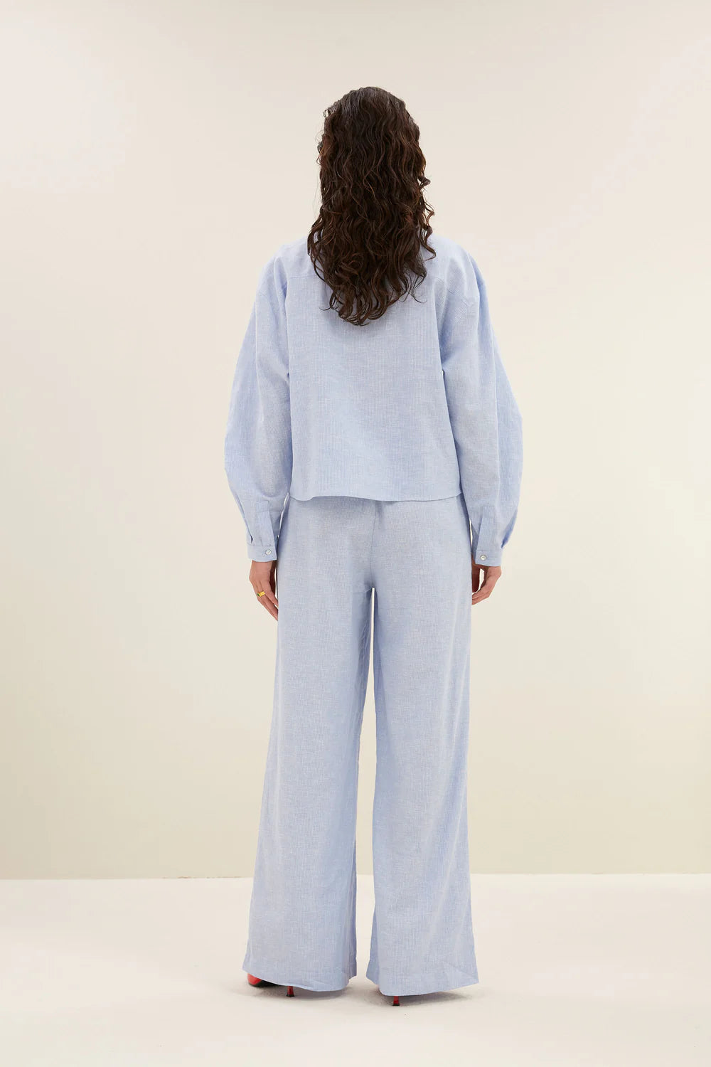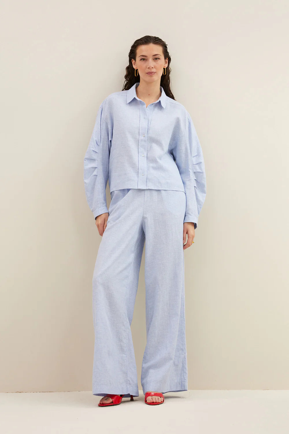 A wardrobe without a crisp button up shirt simply doesn't work! This blouse is a modern take on your classic shirt, with voluminous sleeves for a feminine finish. The traditional elements like the stand up collar and pinstripe design compliment this flattering style.
