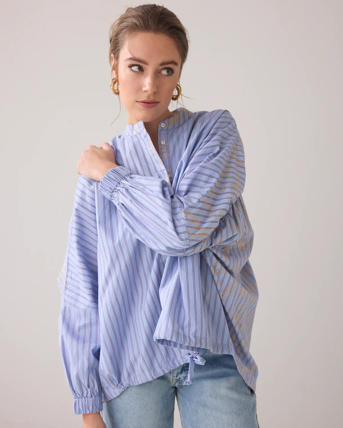 This oversized blouse is the perfect simple but statement look for your smart casual wardrobe. With a drawstring hem, you can cinch in the waist to create a flattering finish. We especially love the oversized long sleeves, it makes this top great to pair with our gilet jackets!