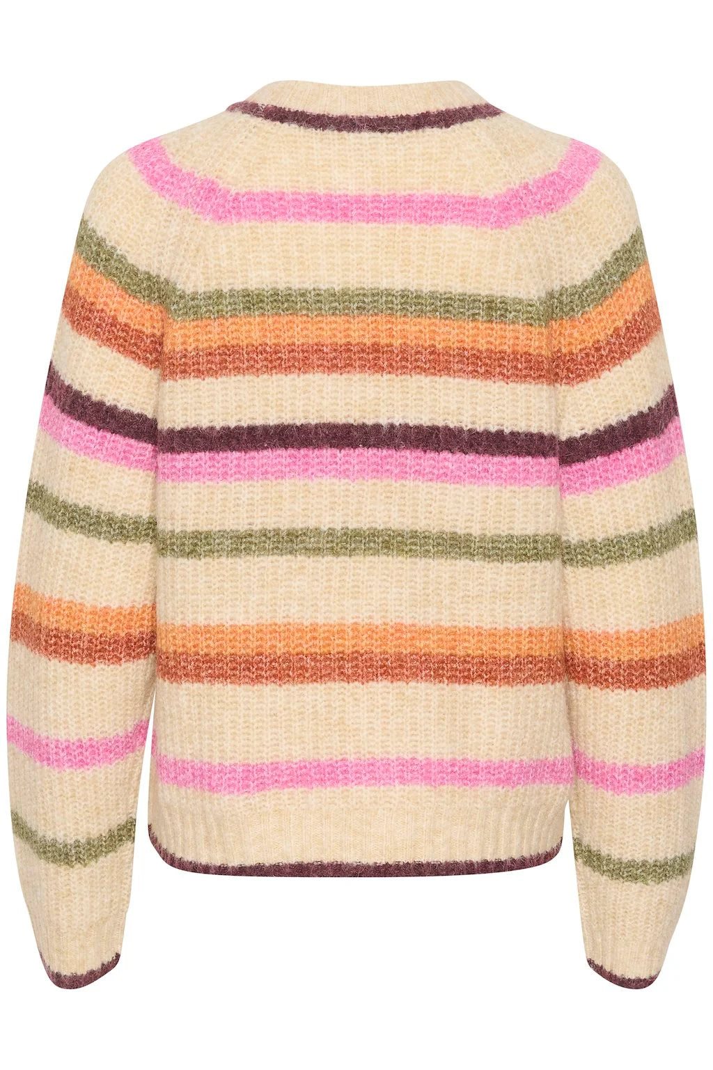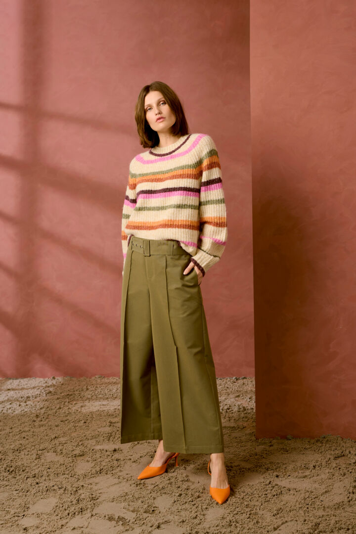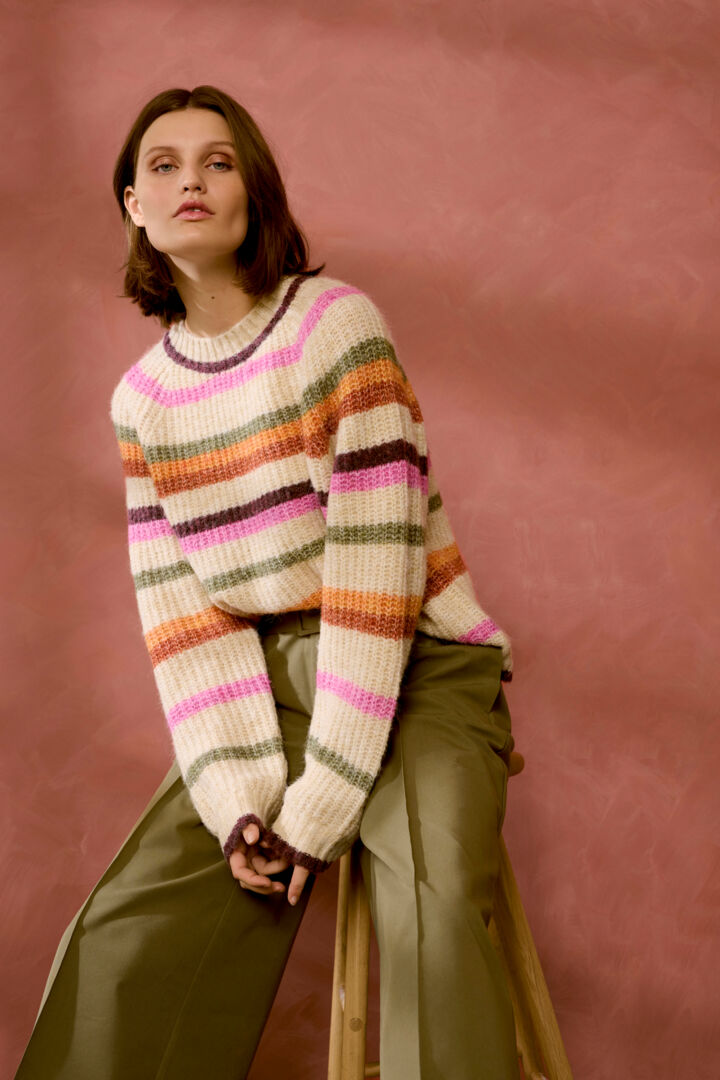 A relaxed fit jumper will be the perfect way to cosy up on a cold autumn day. With multicoloured stripes and a classic knit pullover style, this jumper can be layered up over t-shirts or white blouses to keep you warm and stylish.