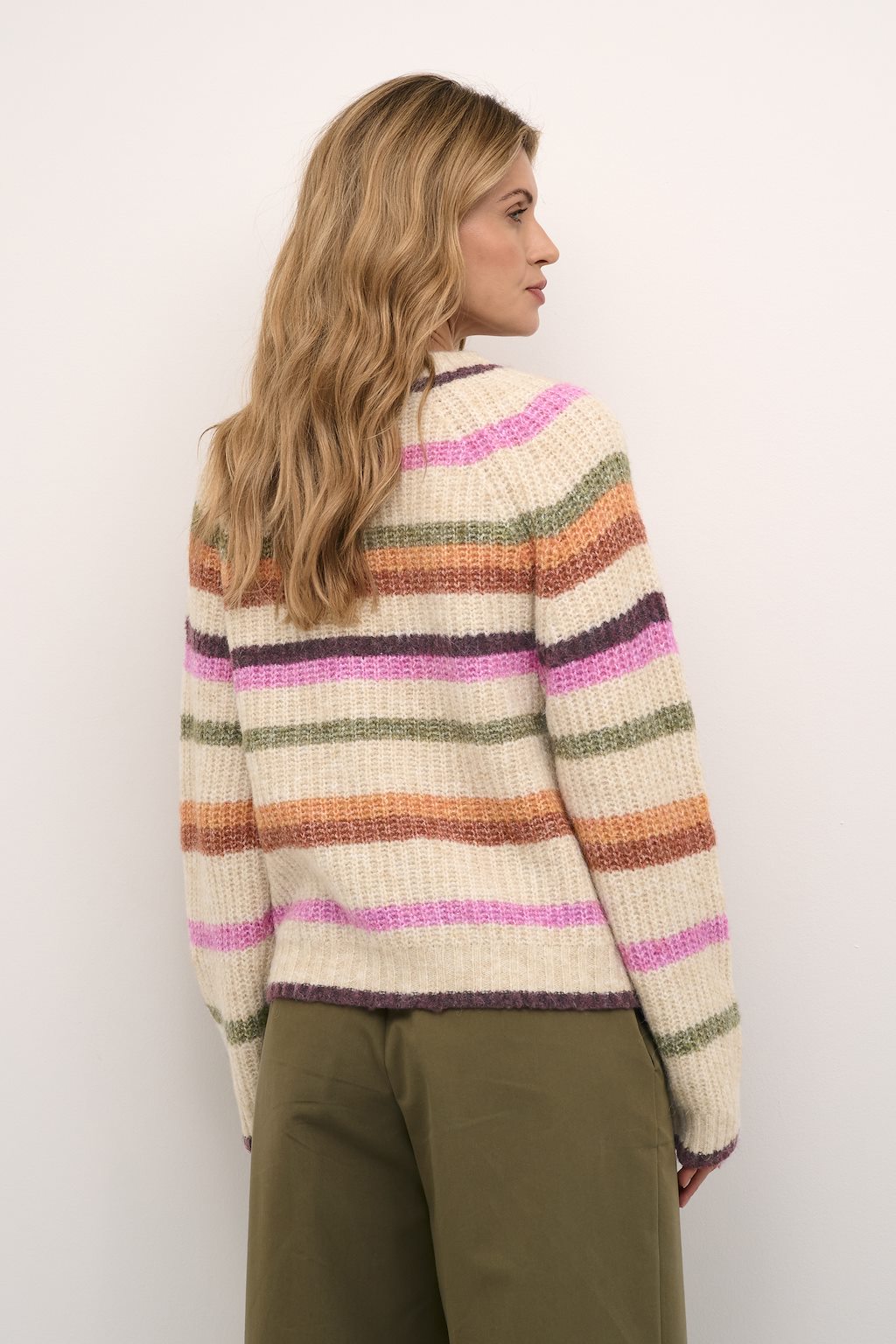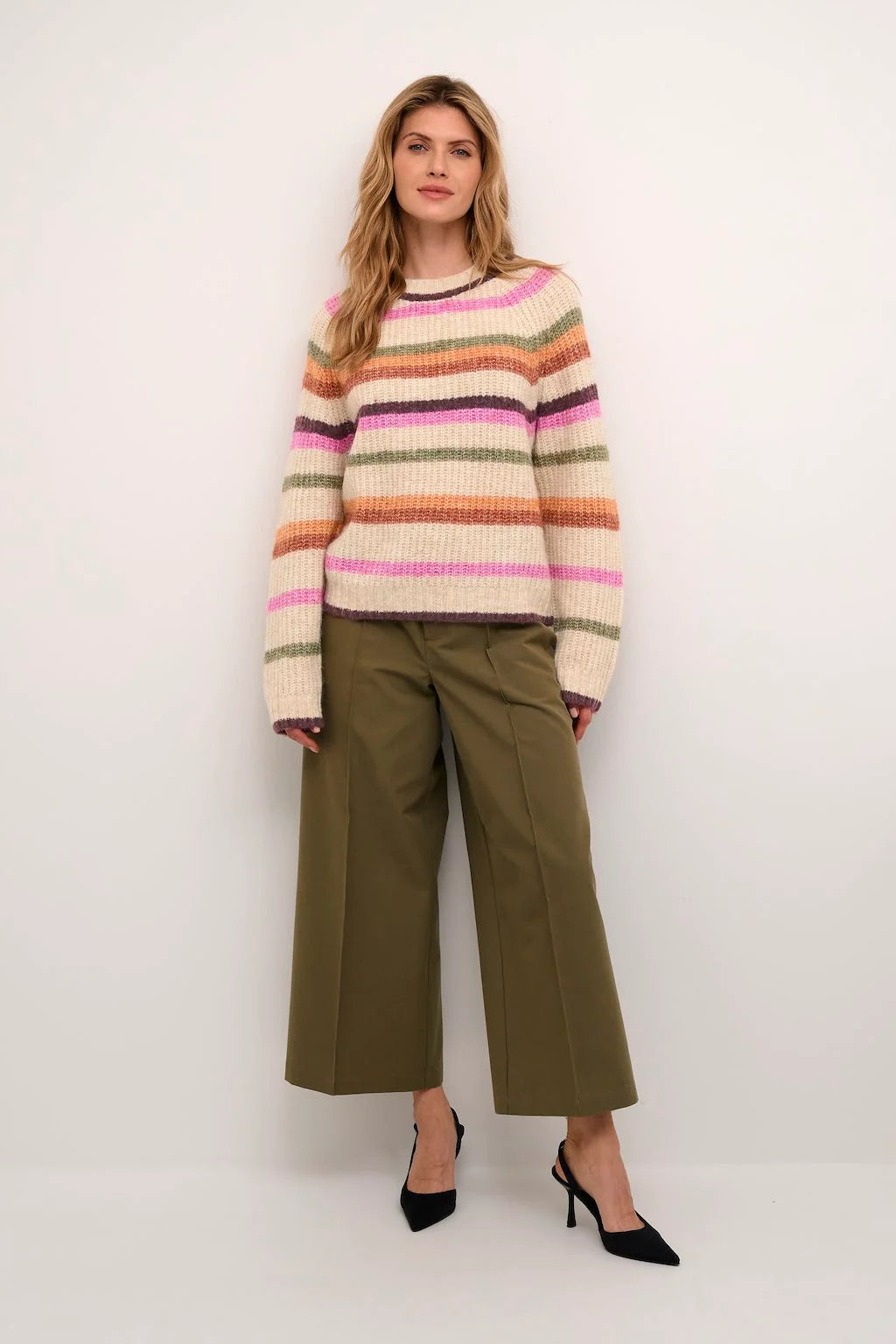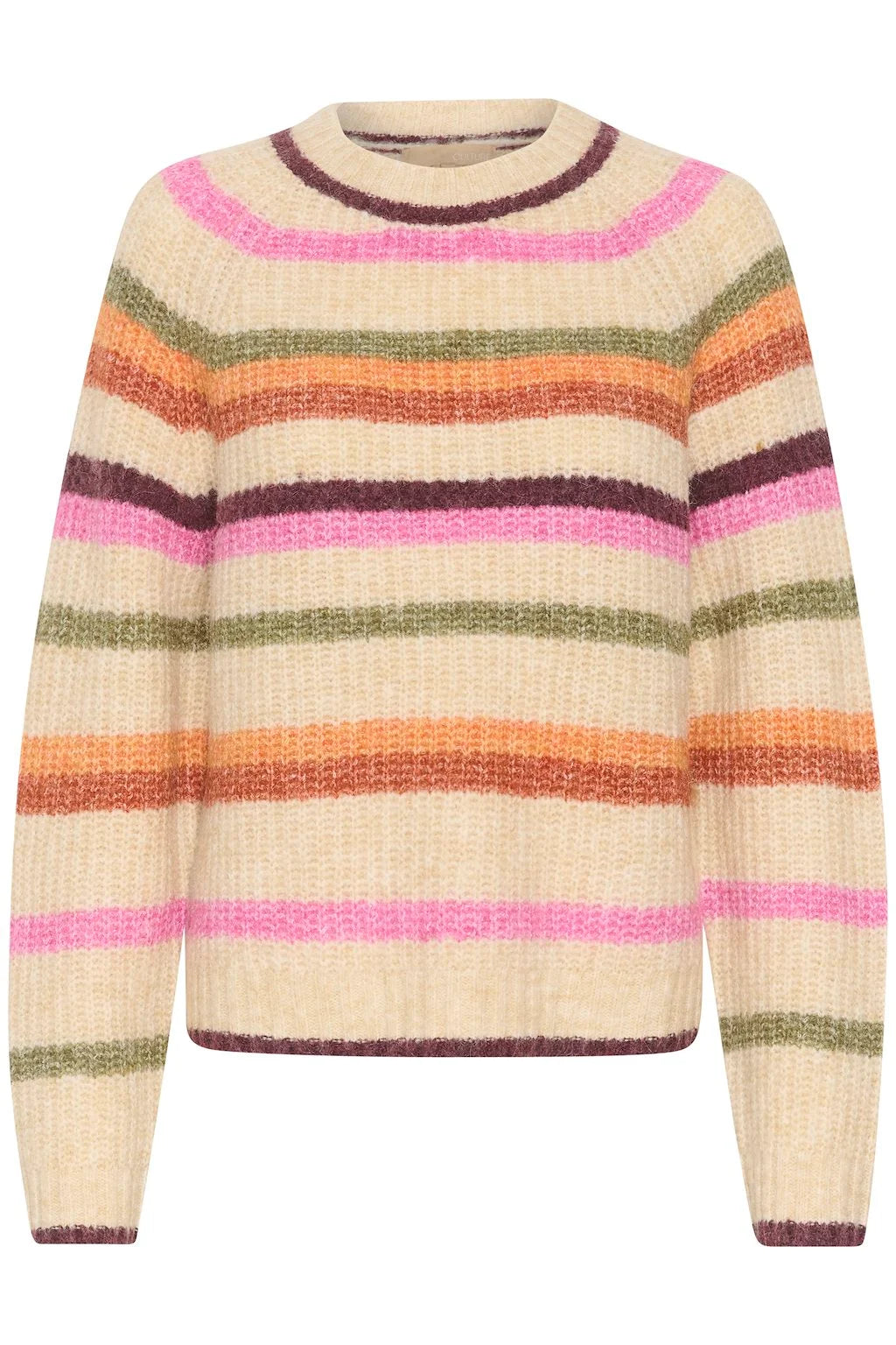 A relaxed fit jumper will be the perfect way to cosy up on a cold autumn day. With multicoloured stripes and a classic knit pullover style, this jumper can be layered up over t-shirts or white blouses to keep you warm and stylish.