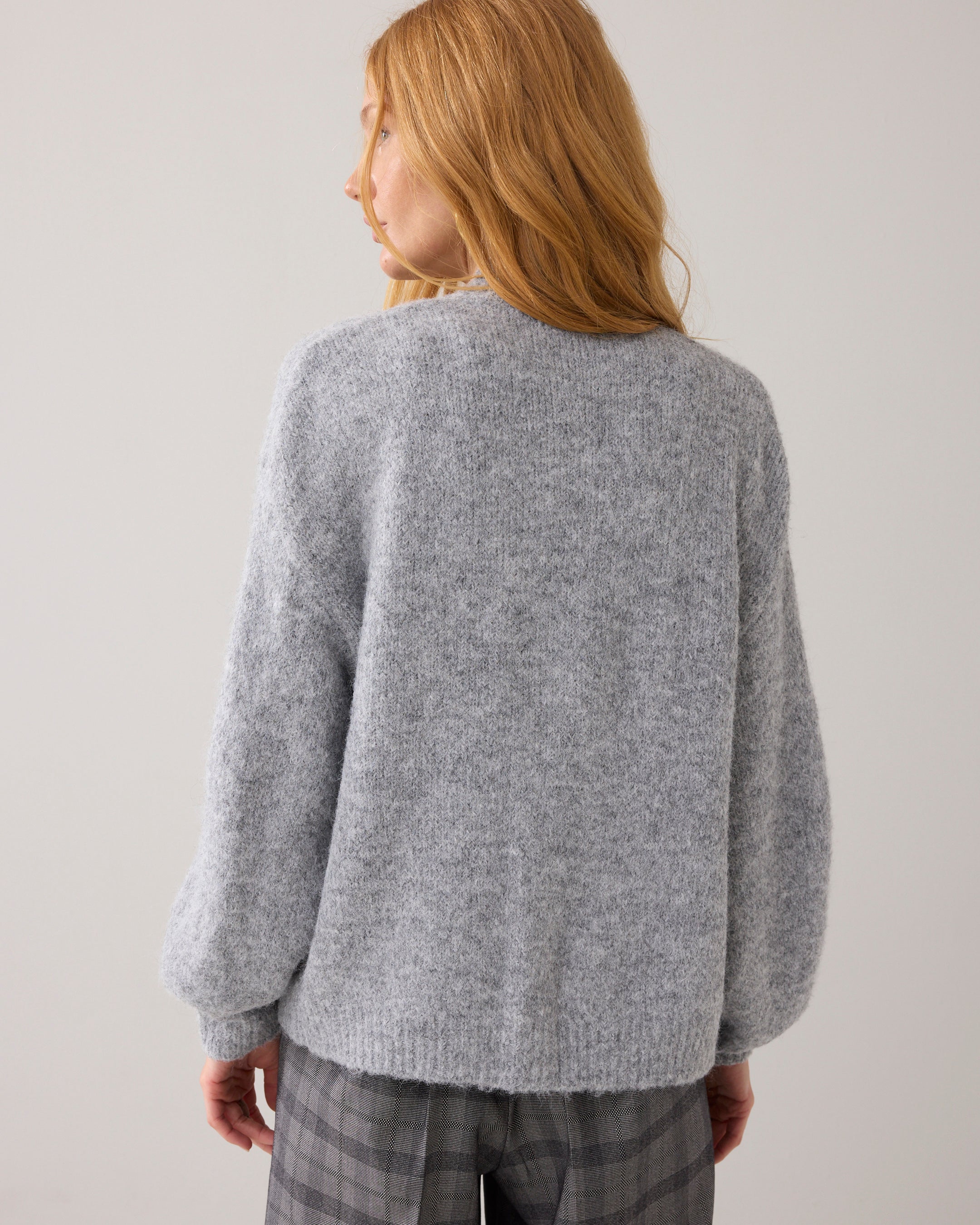 Cosy has never looked this chic. Crafted from luxuriously soft fabric, this cardigan is designed with no fastening for an easy, throw-on-and-go feel. The large, long puffed sleeves add a playful twist, finished with ribbed cuffs to keep the shape just right.