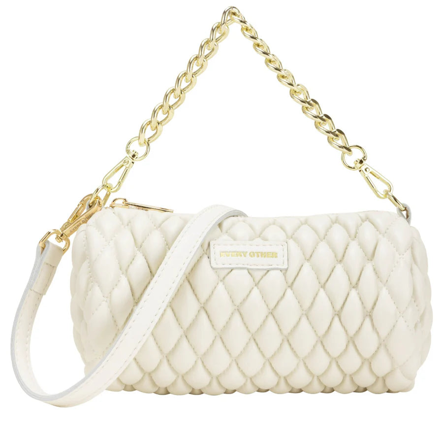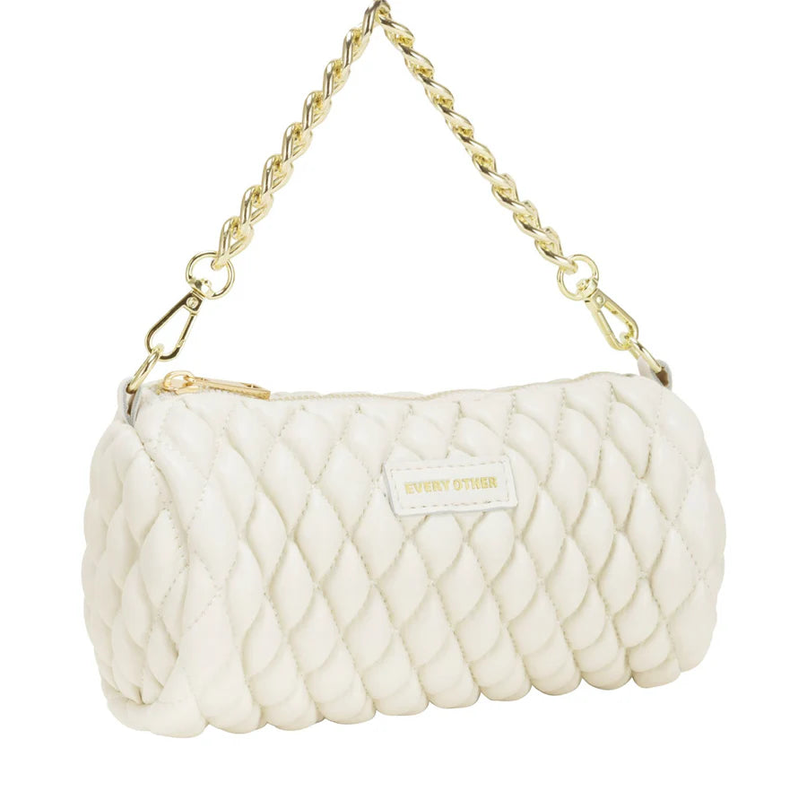 Quilt Detail Cylinder Cross Body - White