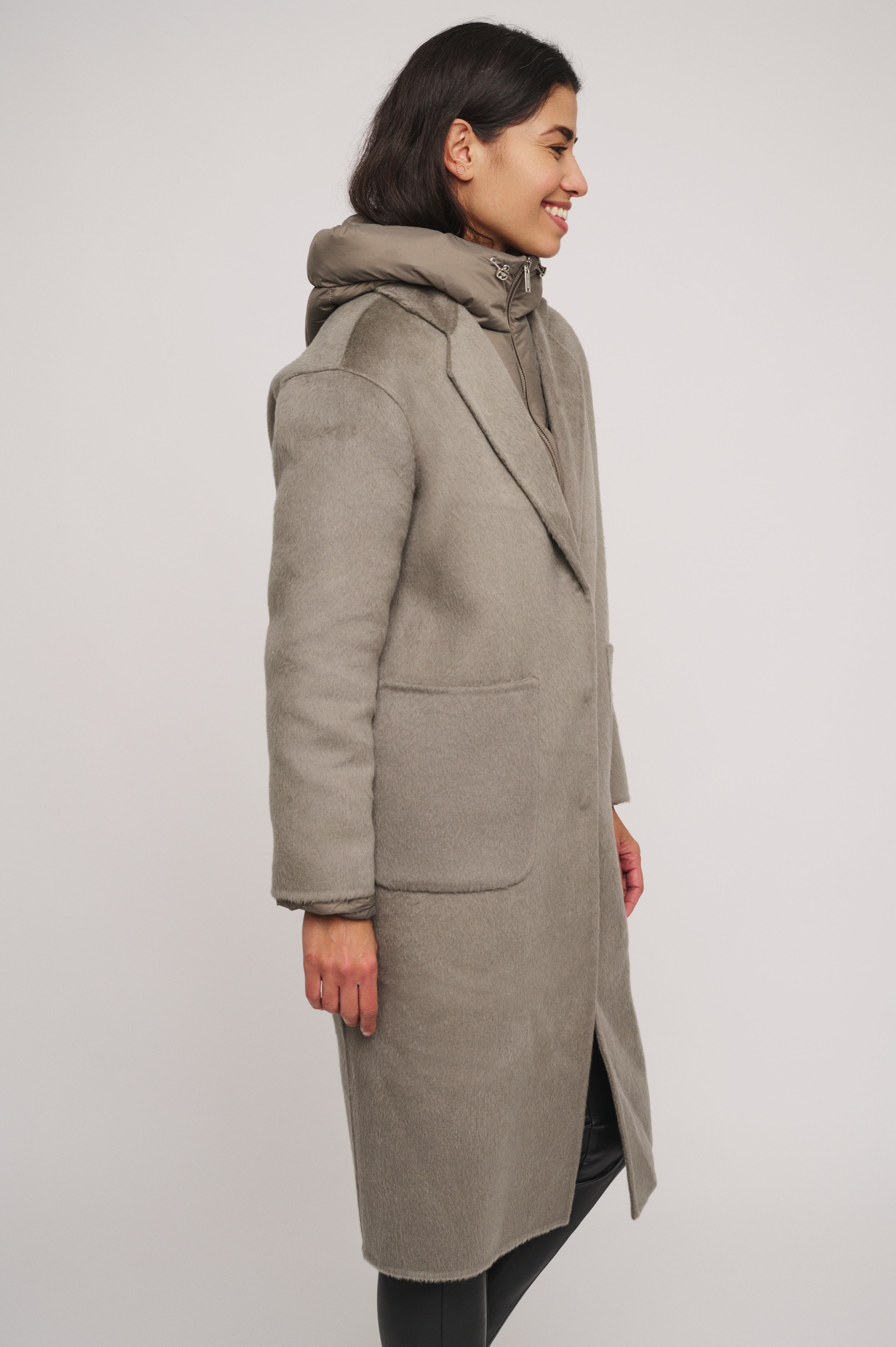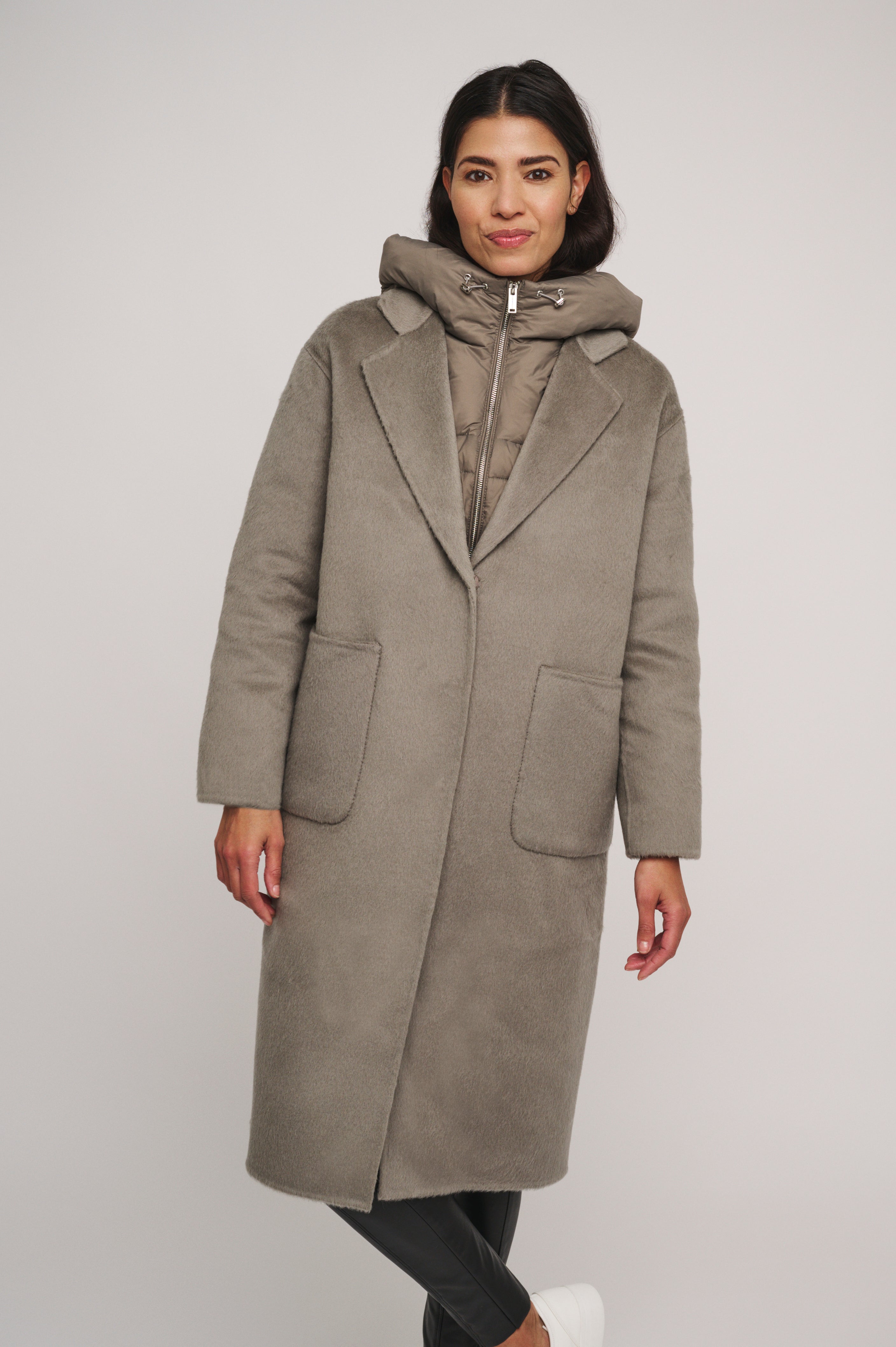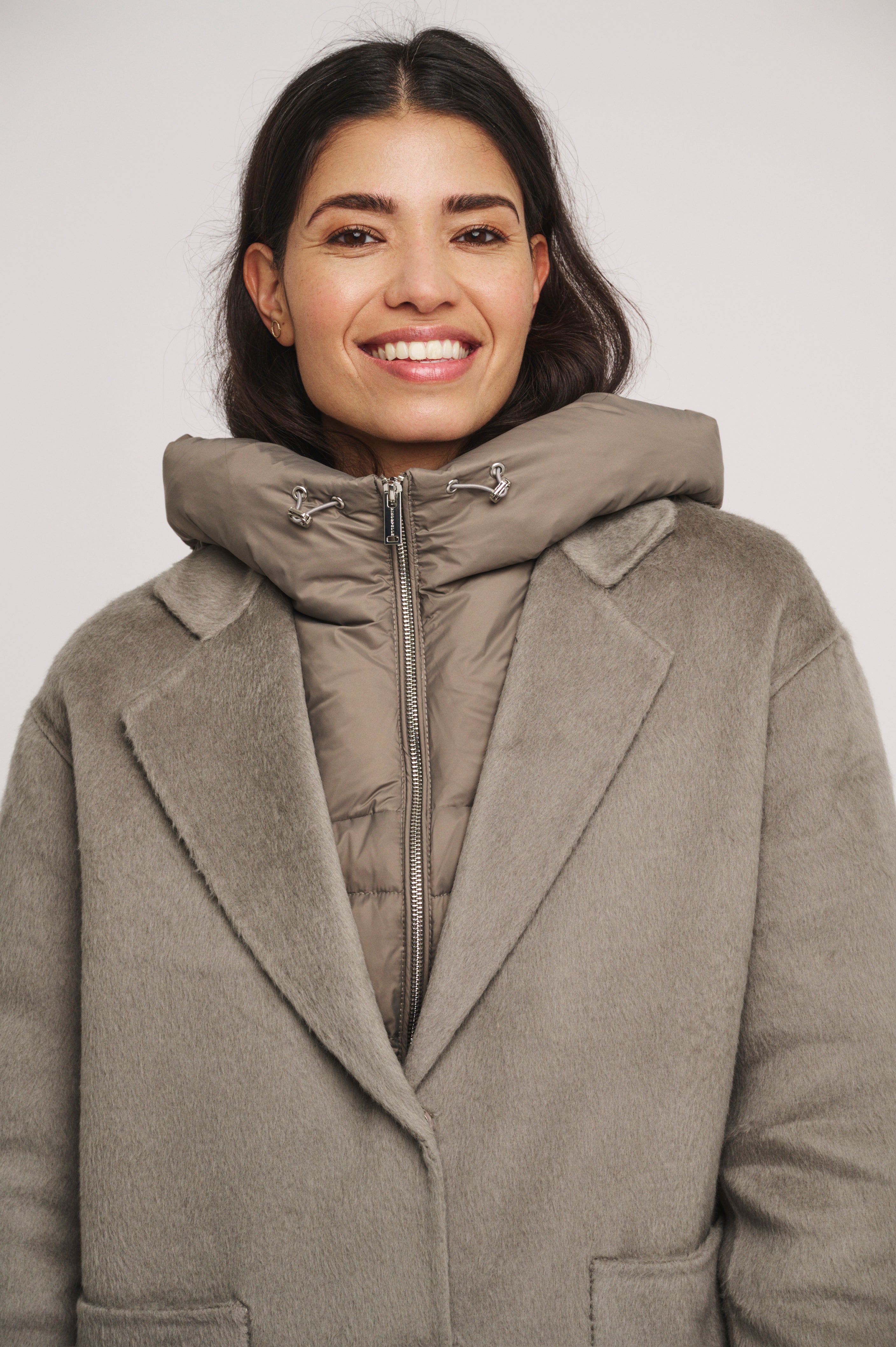 Why have one coat when you can have two! This coat features a beautiful long wool coat, with a removable down jacket tucked inside. Thanks to it's large pockets and button fastening, you can stay just as warm as stylish!