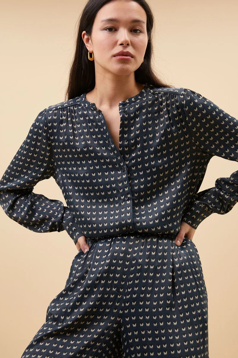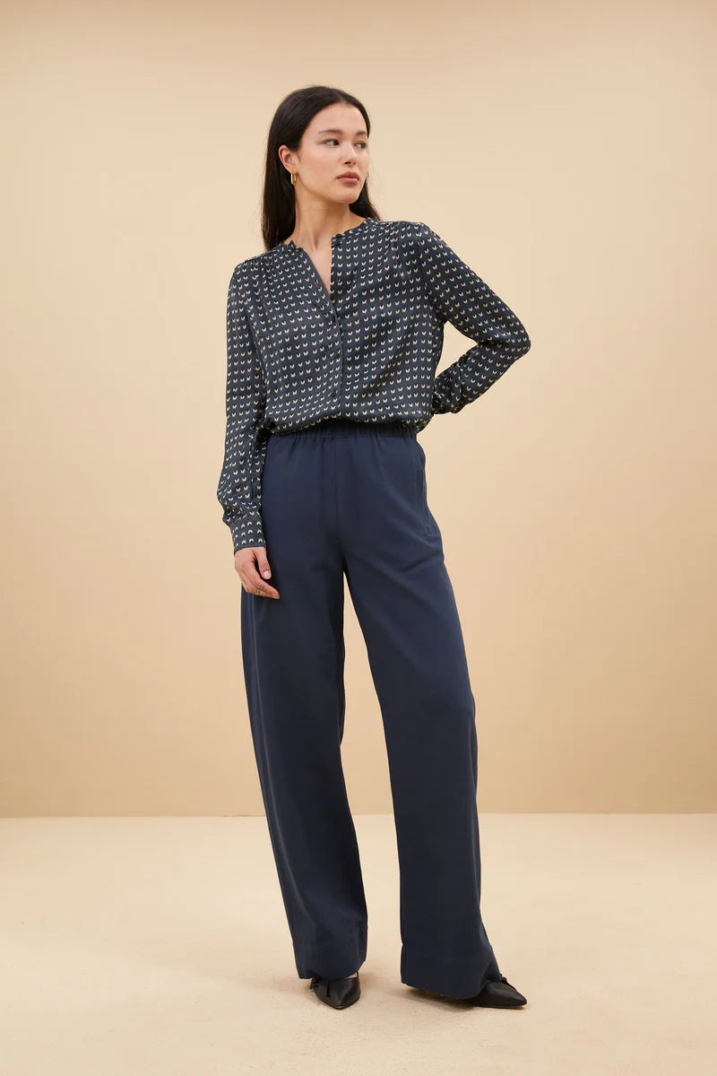 This beautiful printed blouse is an effortless way to dress up any winter outfit. With classic long sleeves and a round neckline, this comfortable blouse can be worn with the matching trousers to complete the look.