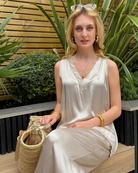 Whether you go for the full matching set or not, this satin top is a summer staple. In the most beautiful champagne colour, you can pair this with anything from classic denim jeans to floaty linen trousers. We especially love this top under a blazer for a sophisticated look.