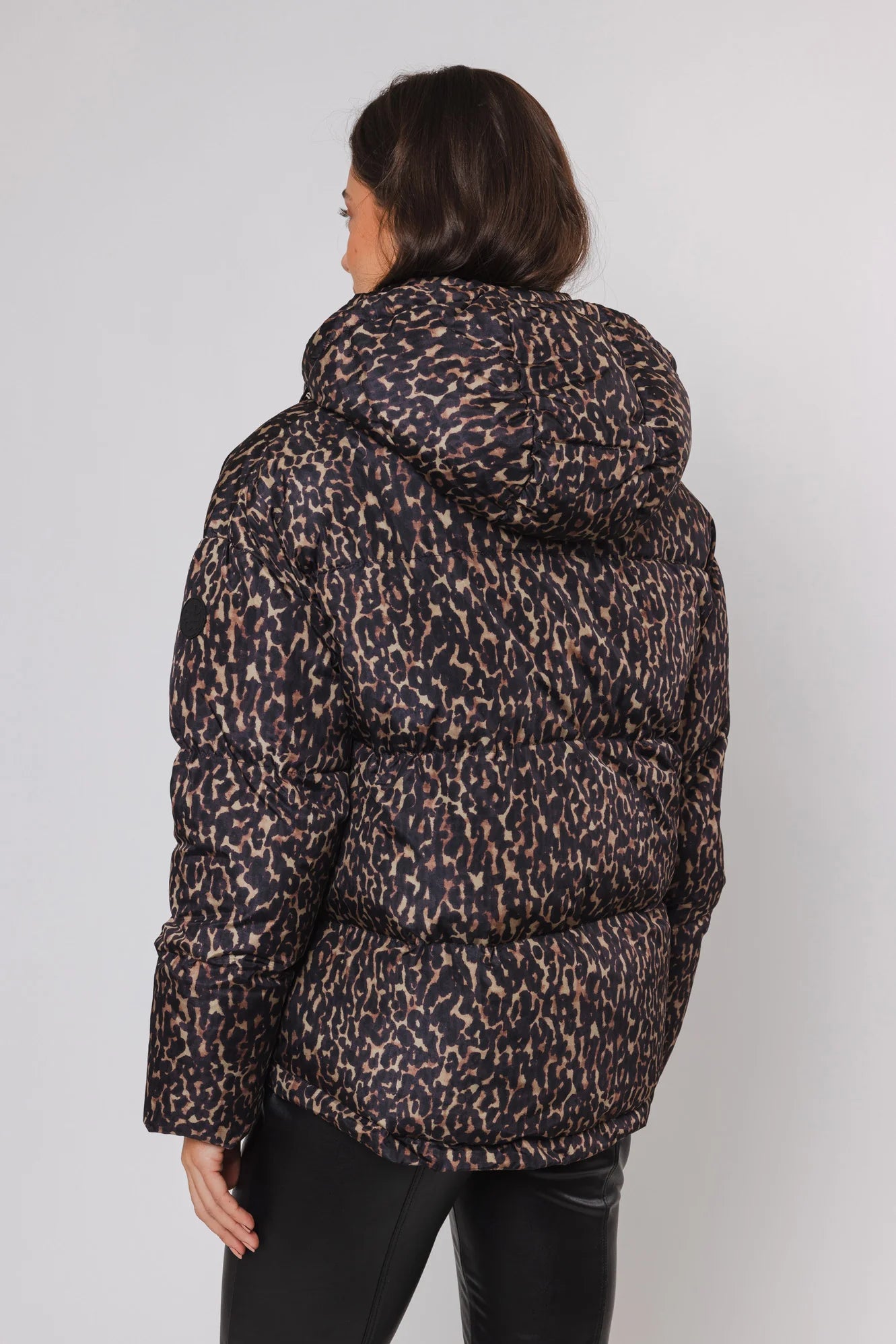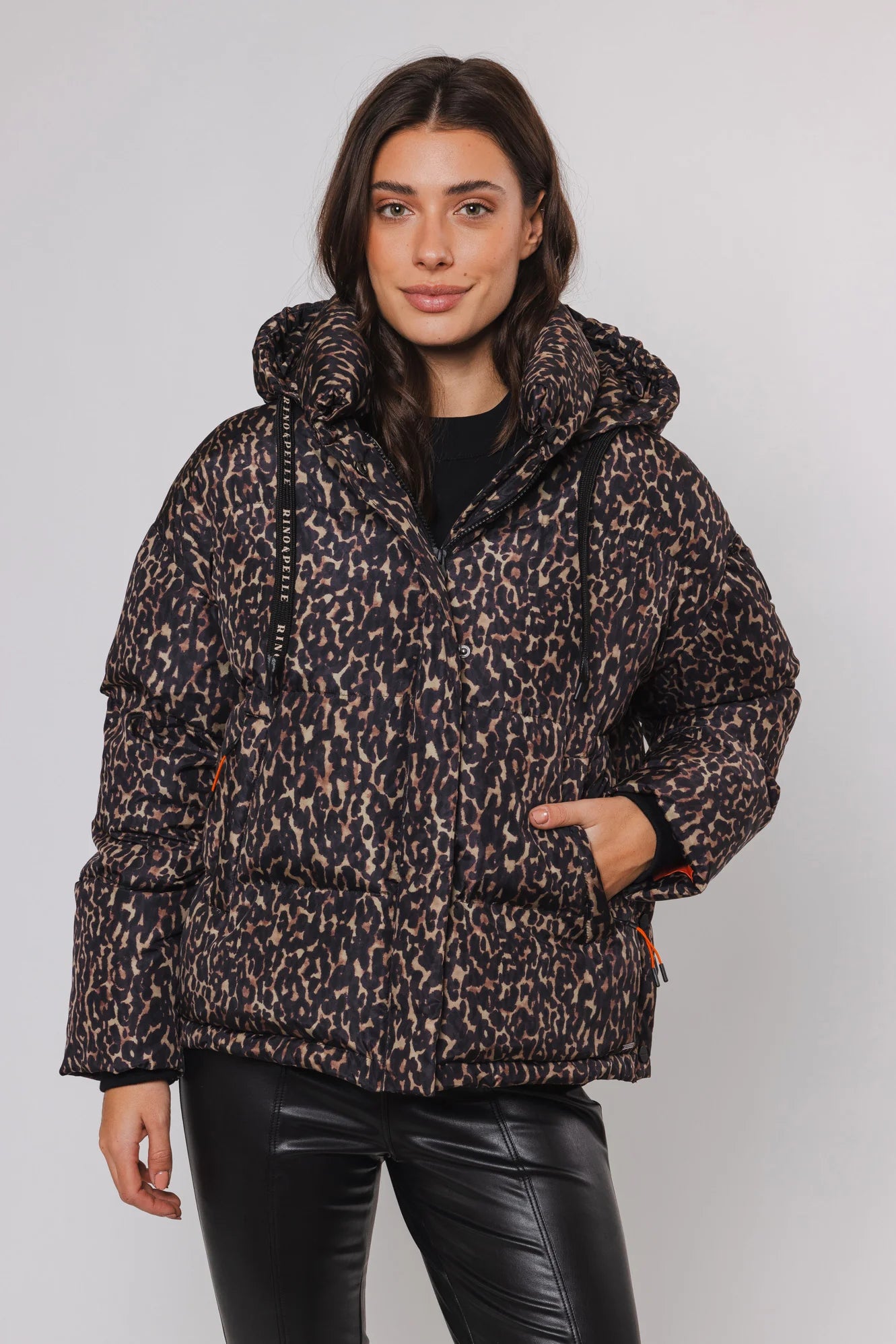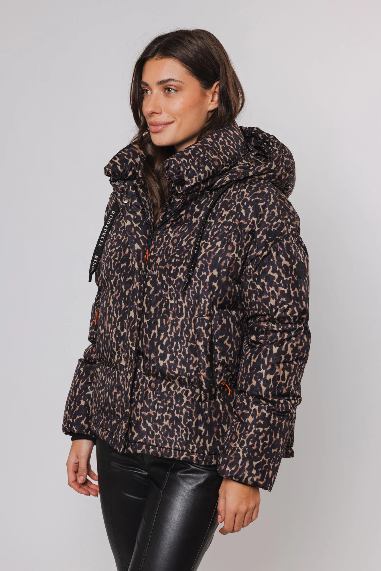 Keep your winter wear looks on trend and cosy with this short padded jacket. In an eye-catching leopard print design, with an oversized boxy fit, this jacket is ideal for layering over chunky knits to keep your warm. The detachable hood protects you from both wind and rain.