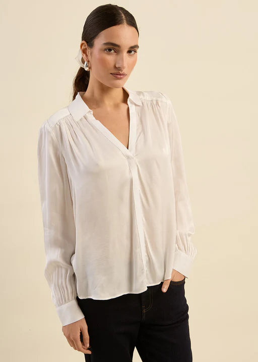 Elegant, sophisticated and luxurious is everything you want in a smart blouse. This cream coloured shirt from Sud Express brings timeless style to any look, and whether you pair it with jeans, trousers or a floaty skirt, this beautiful shirt is a must have for your wardrobe.