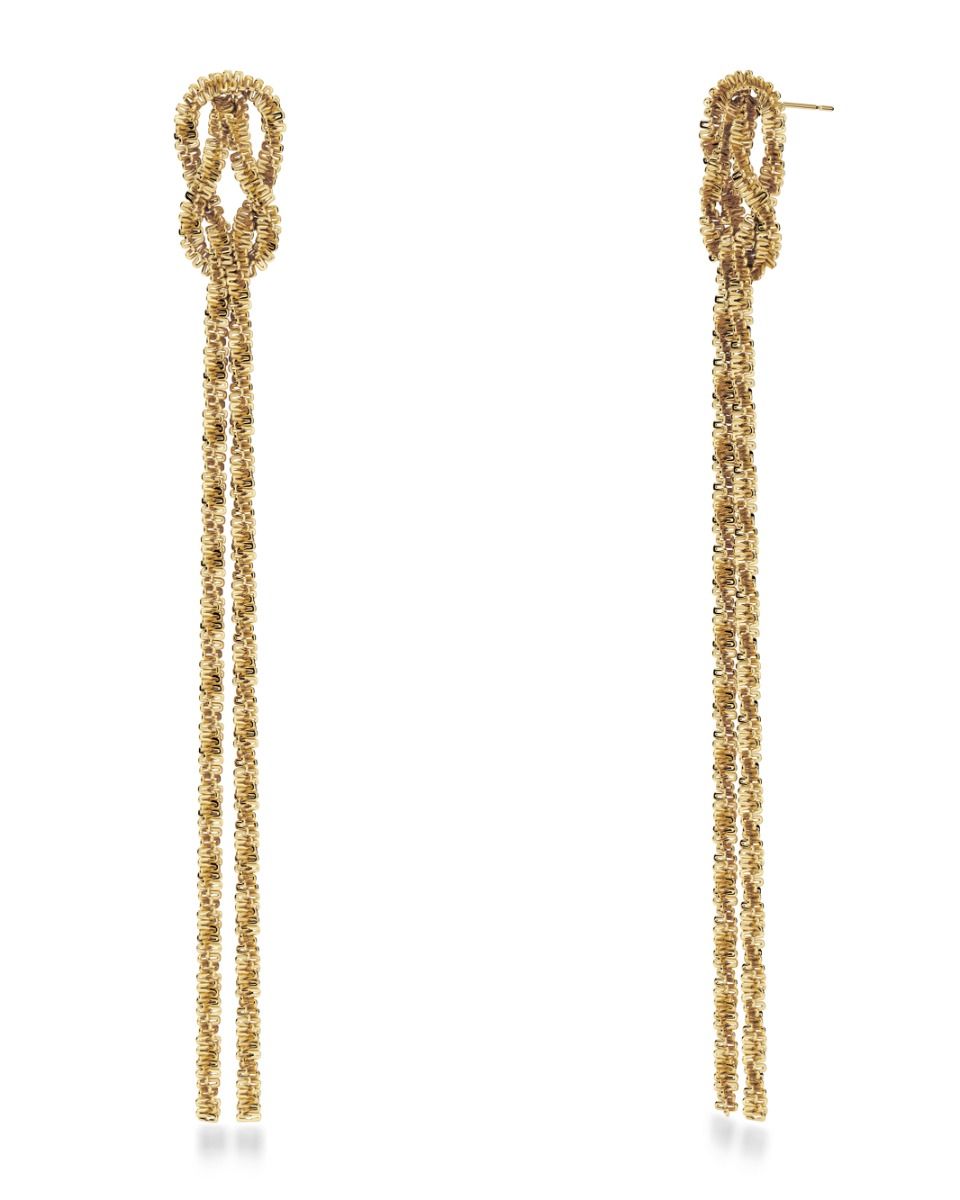 These earrings are a statement piece, perfect for adding that last finishing touch to any outfit. With a chain detail and a woven knot, these earrings are especially beautiful.