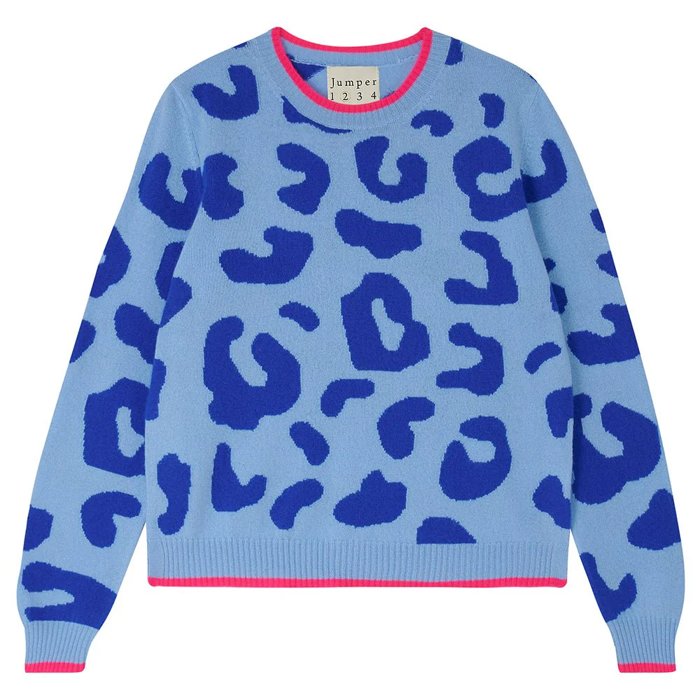 Tipped Leopard Crew - Wedgewood/Bright Blue