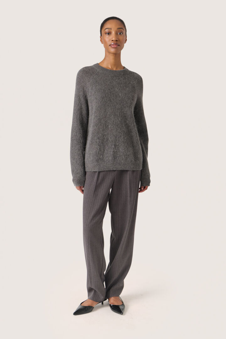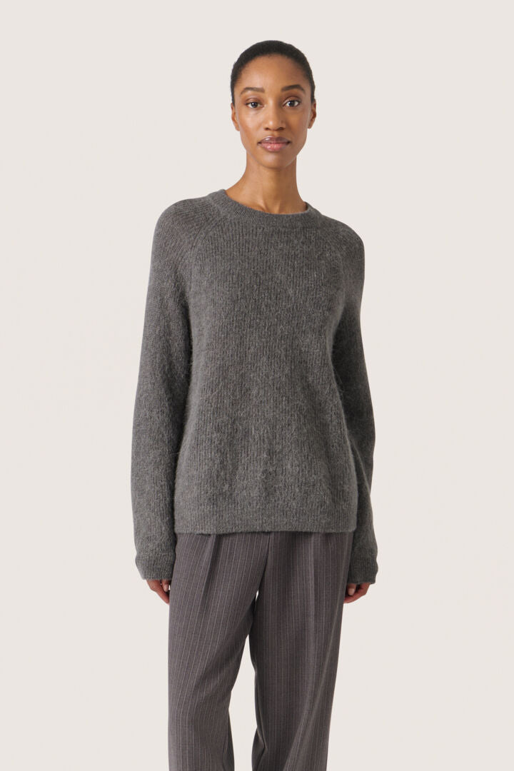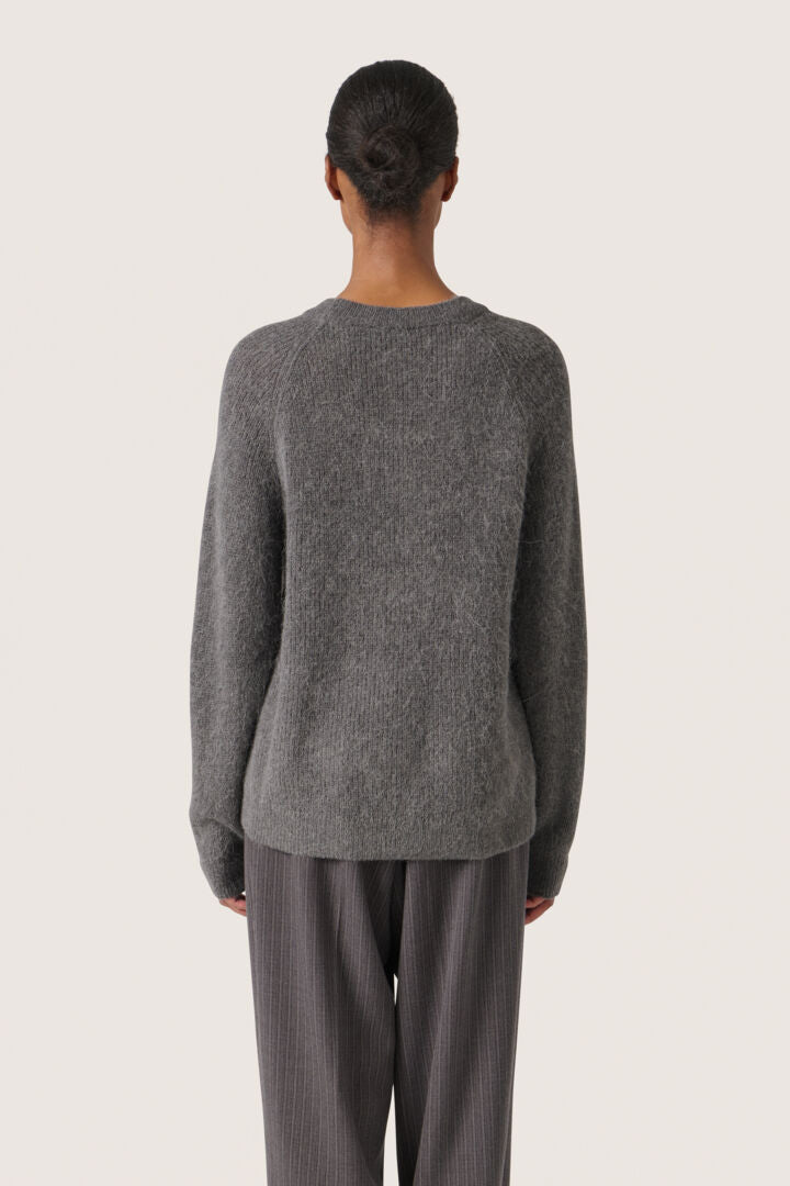 This simple pullover is an essential for the winter and spring. In a neutral beige toned grey, this knitted jumper has a crew neck and long sleeves, perfect for layering or wearing on its own. Simply pair with your favourite denim jeans or a long pleated skirt to complete your look.