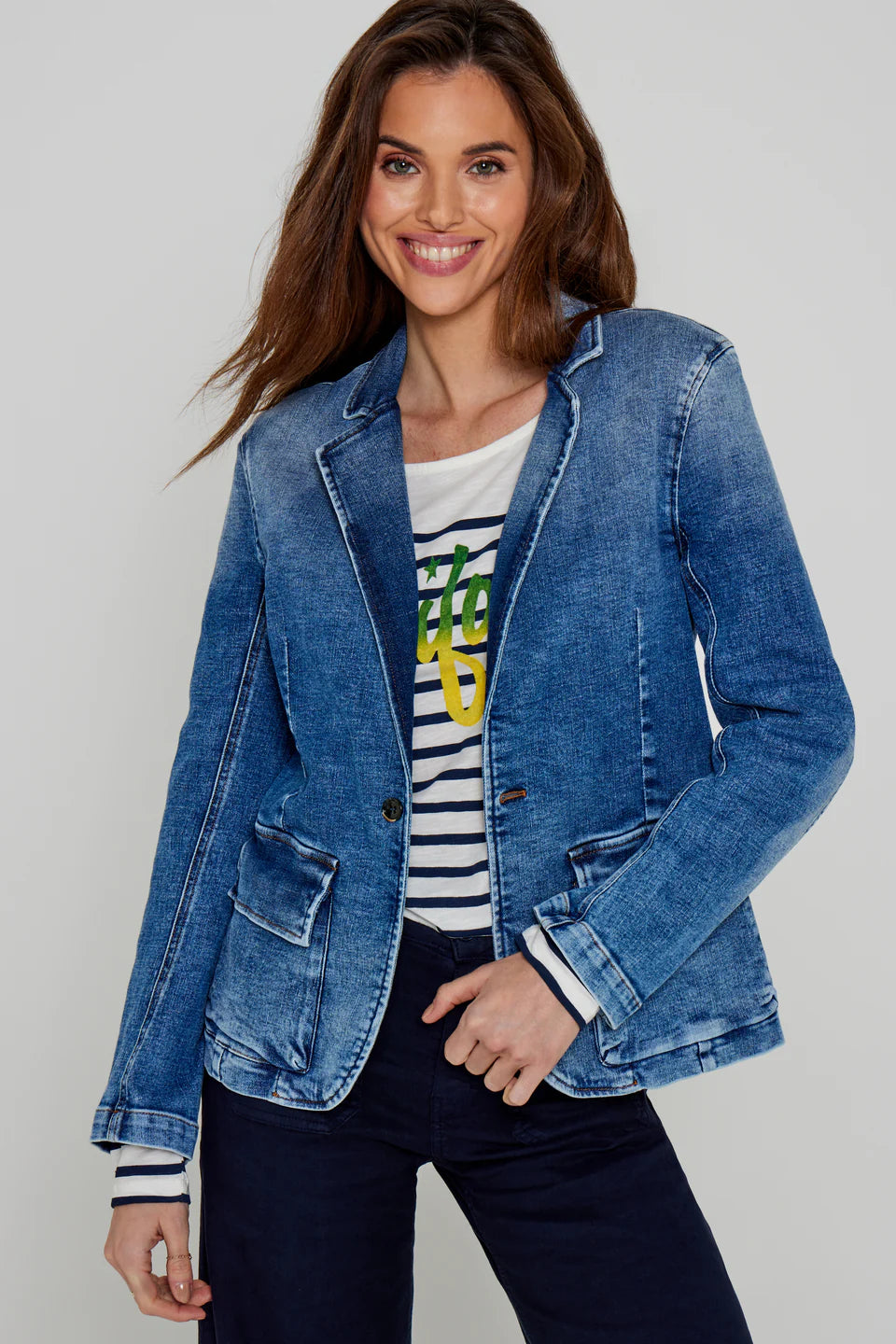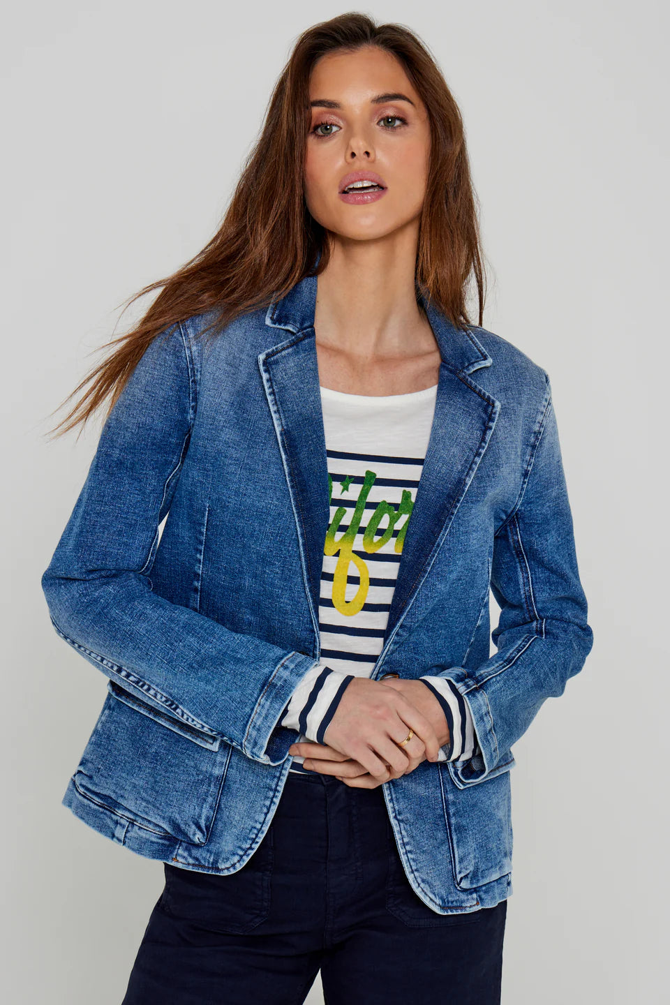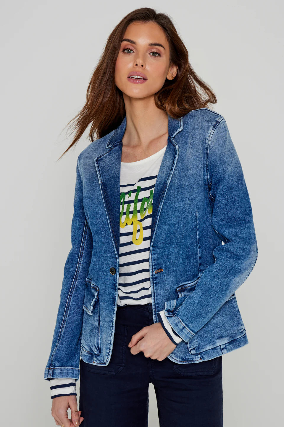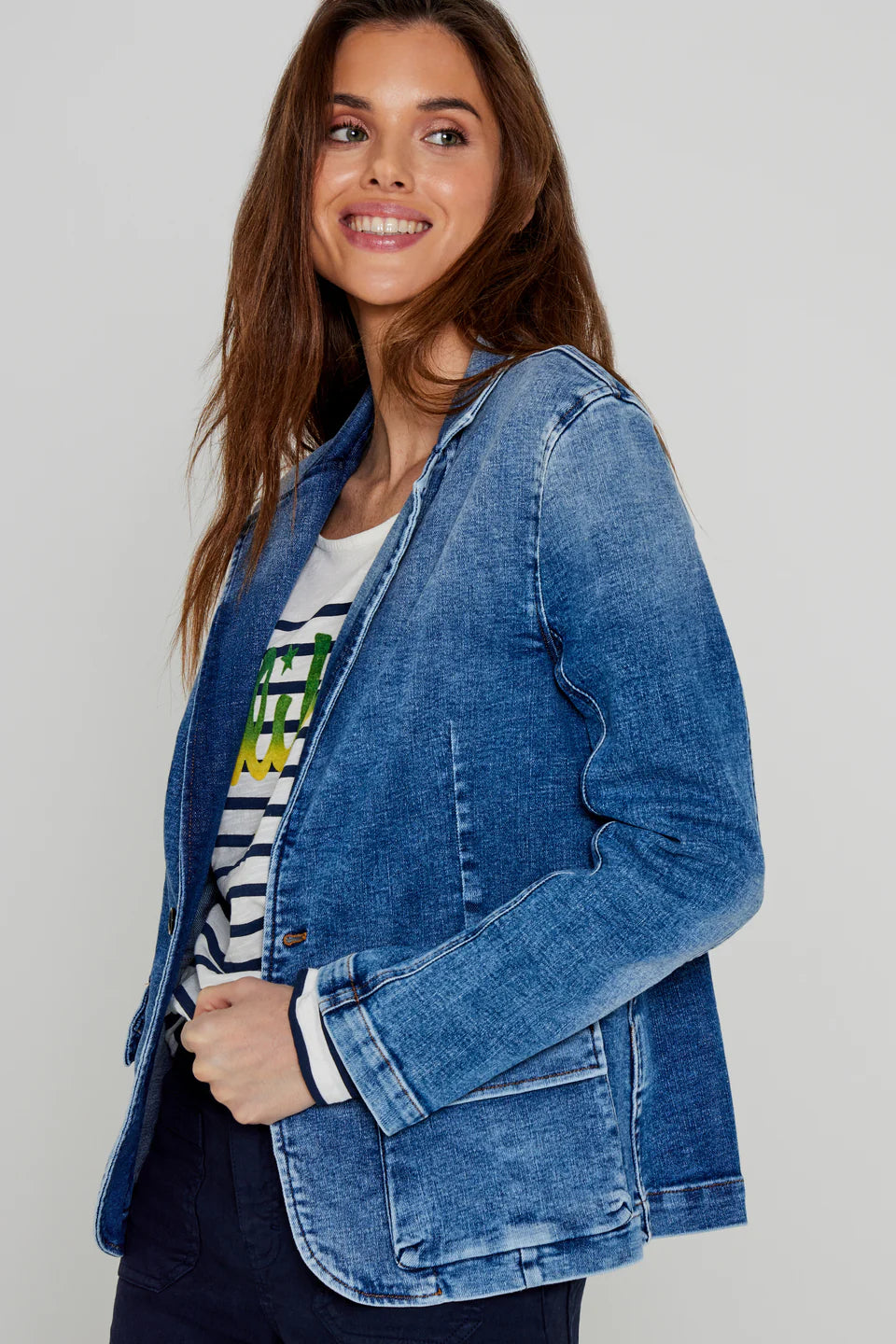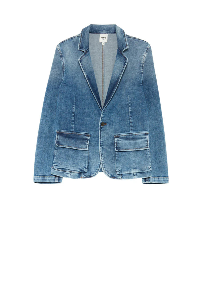 This tailored-style denim blazer is a quirky way to layer up on the cooler days of summer. The straight-cut style is smart but still leaves room for dressing this down with a casual graphic tee. The two pockets at the front add practicality to this jacket.