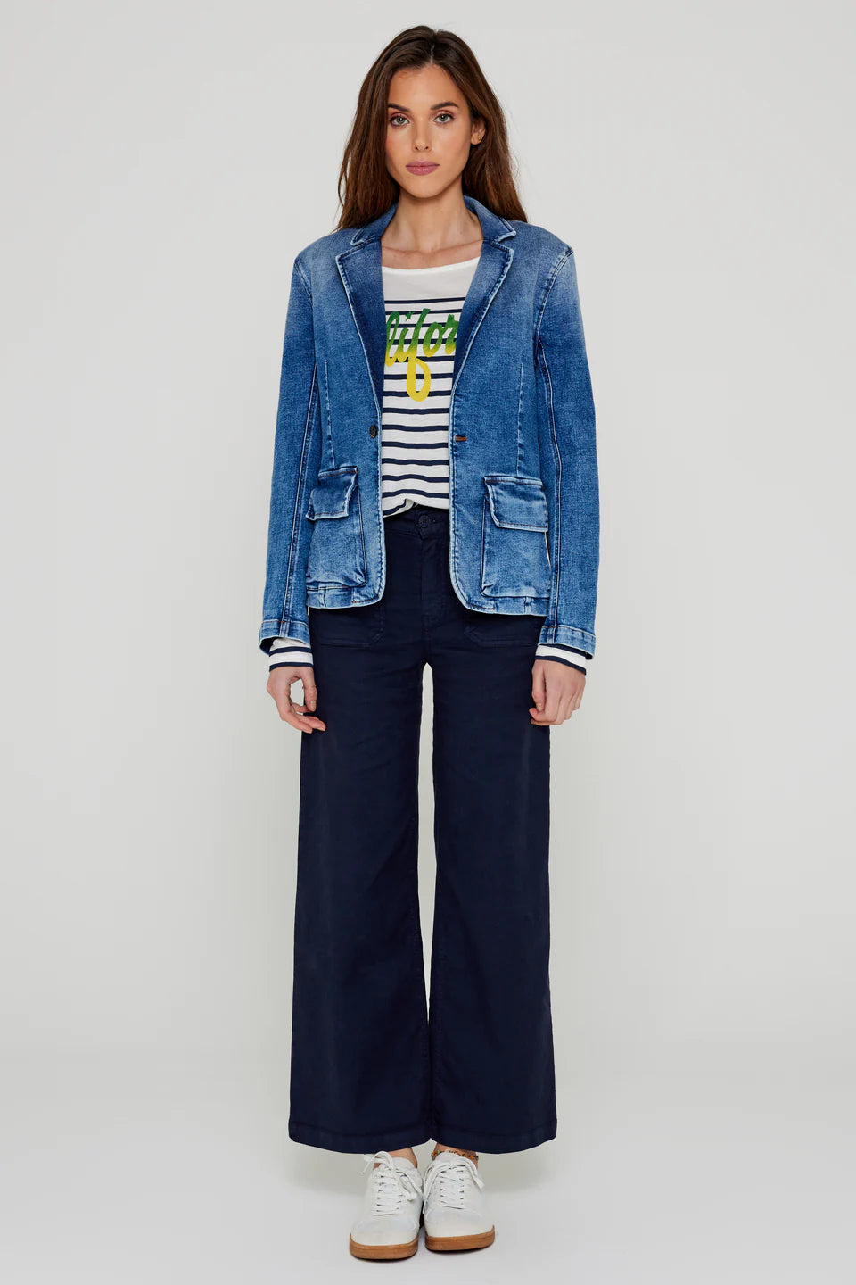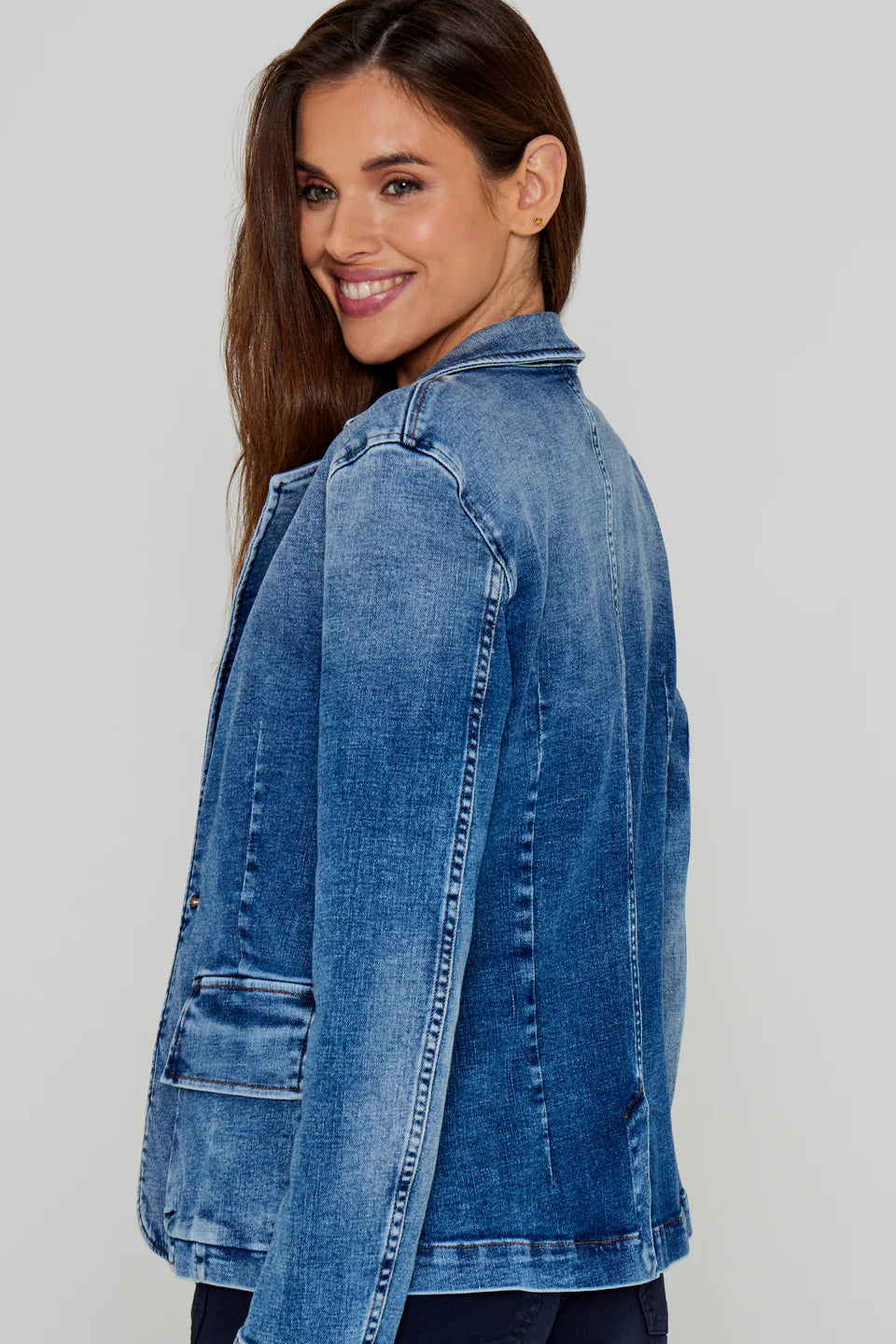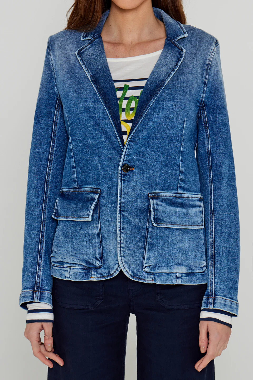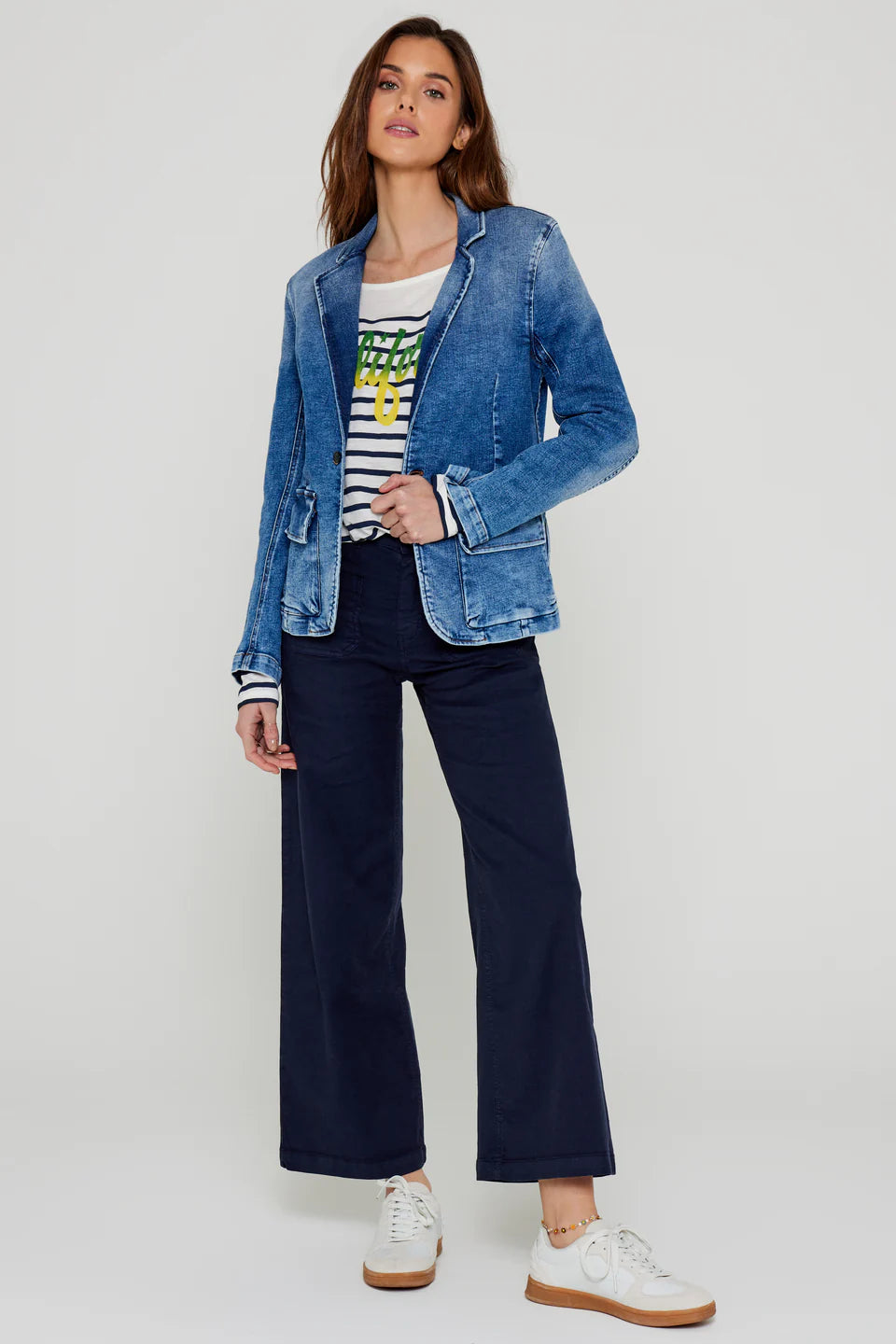 This tailored-style denim blazer is a quirky way to layer up on the cooler days of summer. The straight-cut style is smart but still leaves room for dressing this down with a casual graphic tee. The two pockets at the front add practicality to this jacket.