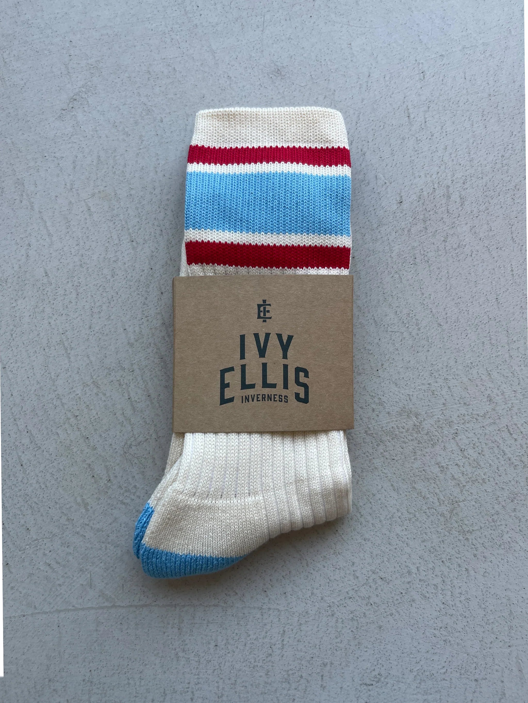 These fashionable striped quarter length socks are inspired by vintage sports, offering a trendy and unique addition to your wardrobe.