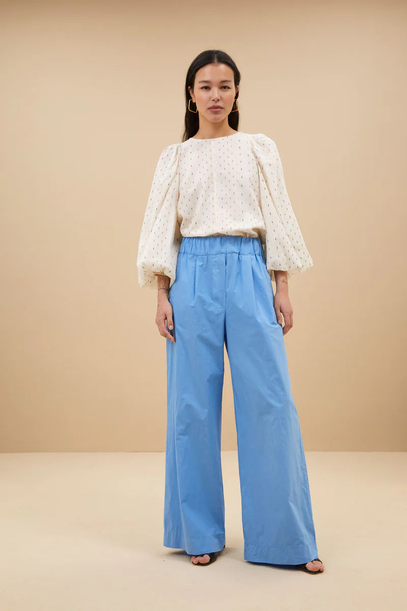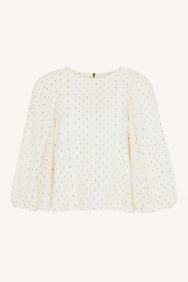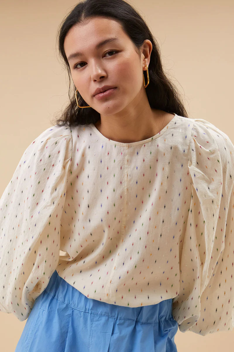 Make a statement with the Zasu blouse! With a voluminous sleeve style and shorter torso, this blouse looks amazing with a high-waisted pair of jeans perfect for any occasion.