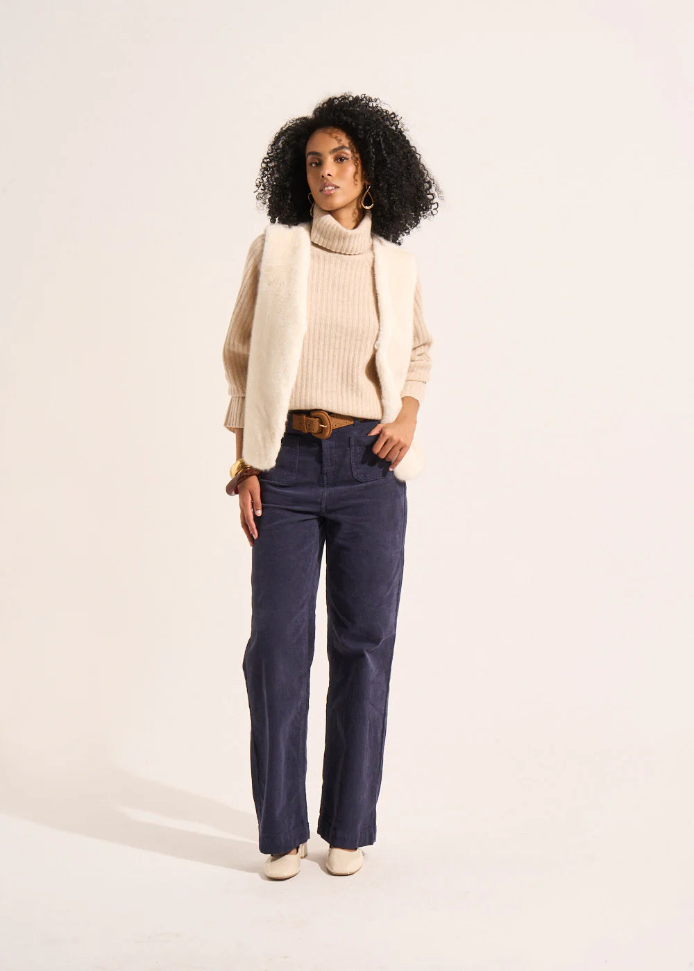Step into effortless elegance with the these velvet corduroy trousers. Featuring a wide-leg cut and high waist, they create a flattering, modern silhouette that moves with you. Front and back patch pockets add a chic, practical touch, while the soft cotton blend with a hint of elastane ensures comfort and durability. A season-defining, iconic piece, these trousers are perfect for pairing with a tucked-in blouse, a fitted knit, or your favourite statement top for an instantly polished look.